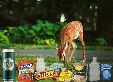 Foto napoví, že se jedná hlavně o pamlsky, láhve, plechovky, plastové nebo hliníkové kelímky a vaničky. Velkou skupinou jsou samostatné střepy. Proto demonstrativně obrázek s kolouškem.